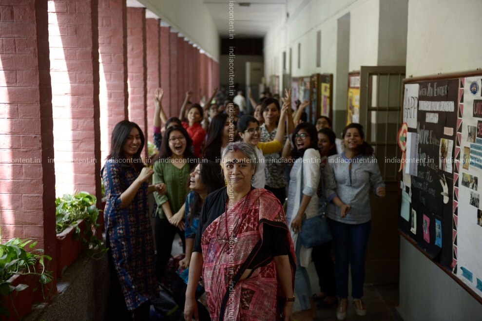 Professor Suman Sharma Principal of LSR college poses with the students on April 27 2017 in New Delhi India on thursday. Photo by M Zhazo Lady Shri Ram College Best Colleges Higher Education