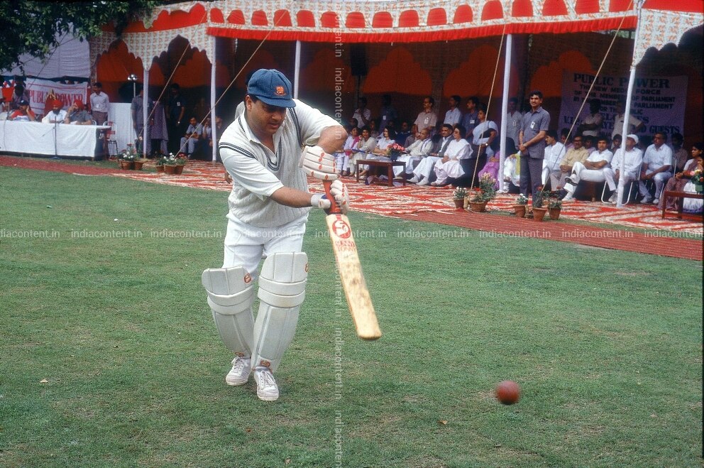 Buy Madhavrao Scindia, Union Cabinet Minister from Gwalior practicing batting at a Cricket stadium Pictures, Images, Photos By SHARAD SAXENA - Archival pictures