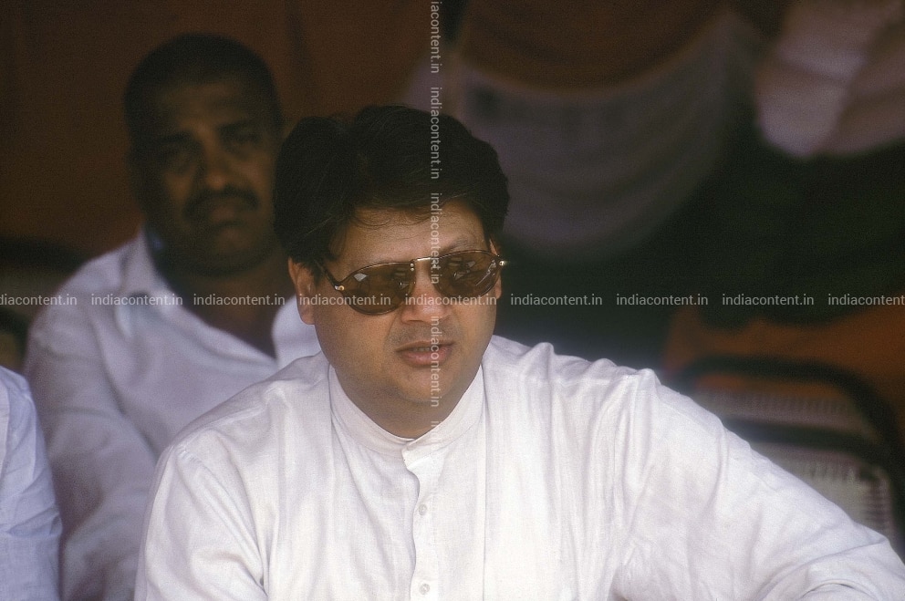 Madhavrao Scindia Union Cabinet Minister sitting at a function Congress News Portrait
