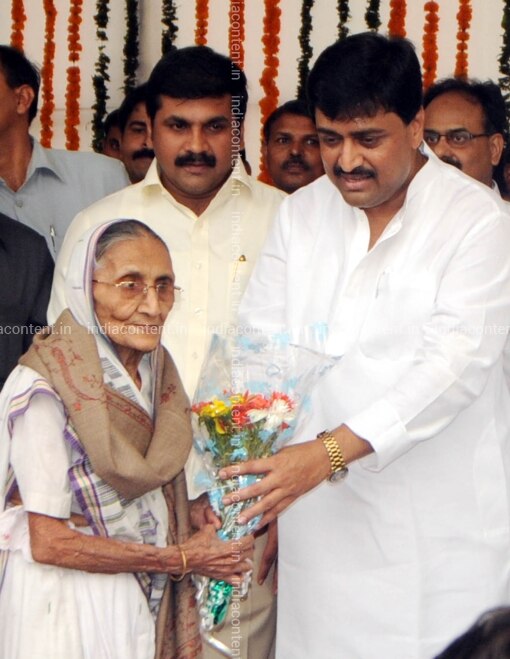 MUMBAI INDIA APRIL 30 Maharashtra Chief Minister Ashok Chawan felicitates freedom fighters TO mark the 50th Maharashtra DAY celebrations IN Mumbai ON April 30 2010. Photo BY Nagesh Ohal India Today GROUP Ashok Chavan