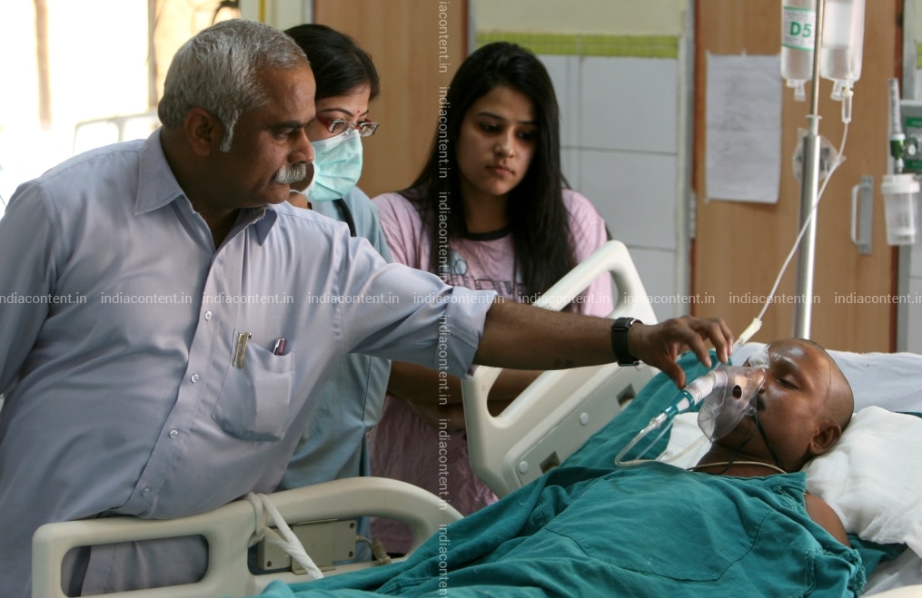 NEW DELHI INDIA MARCH 21 Dr PN Pandey examines Noor Islam AT the Lok Nayak hospital IN NEW Delhi ON March 21 2010. Noor Islam a labourer lost his balance WHILE working AND fell FROM the SECOND FLOOR of an under-construction building AT Sant Nagar. ONE of the iron rods kept ON the ground had pierced the 35-YEAR-olds head. Photo BY Shekhar Yadav India Today GROUP Noor IslamPN Pandey