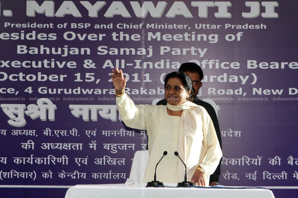 Mayawati Chief Minister Uttar Pradesh during Bahujan Samaj Party BSP Executive Meeting at Talkatora Road New Delhi India Politics UP Politicians