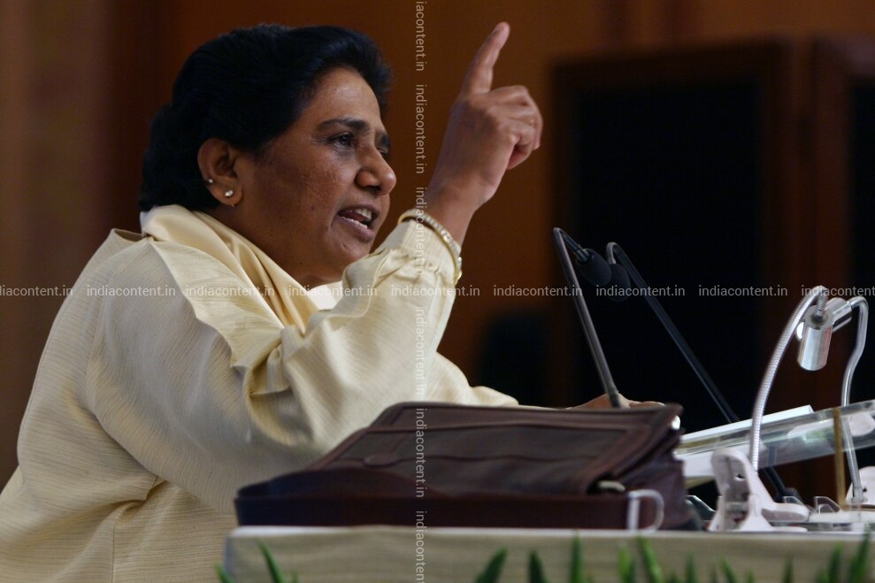 NEW DELHI INDIA - MAY 19 Former chief minister of Uttar Pradesh state Mayawati whose party suffered a crushing defeat in he recently held elections speaks during a press conference in New Delhi India Saturday May 19 2012. Authorities in the state are now investigating whether Mayawatis park projects honoring the contribution of dalits to the nation including the father of the constitution B.R. Ambedkar was an elaborate swindle. The northern states government is investigating millions of dollars it says were misappropriated by Mayawatis administration as it built the statues and monuments. Photo by Kaushik Roy India Today Group Mayawati