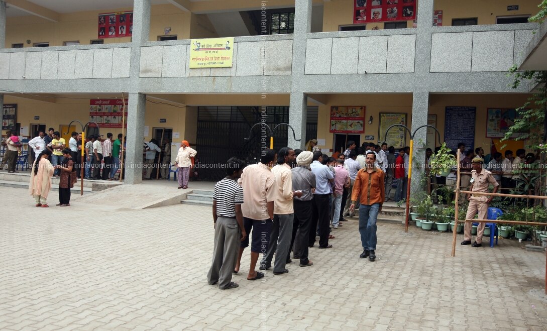 NEW DELHI INDIA - APRIL 15 Voters wait for their turn to cast votes at a polling booth in during MCD election in New Delhi on Sunday. Photo by Parveen Negi India Today Group