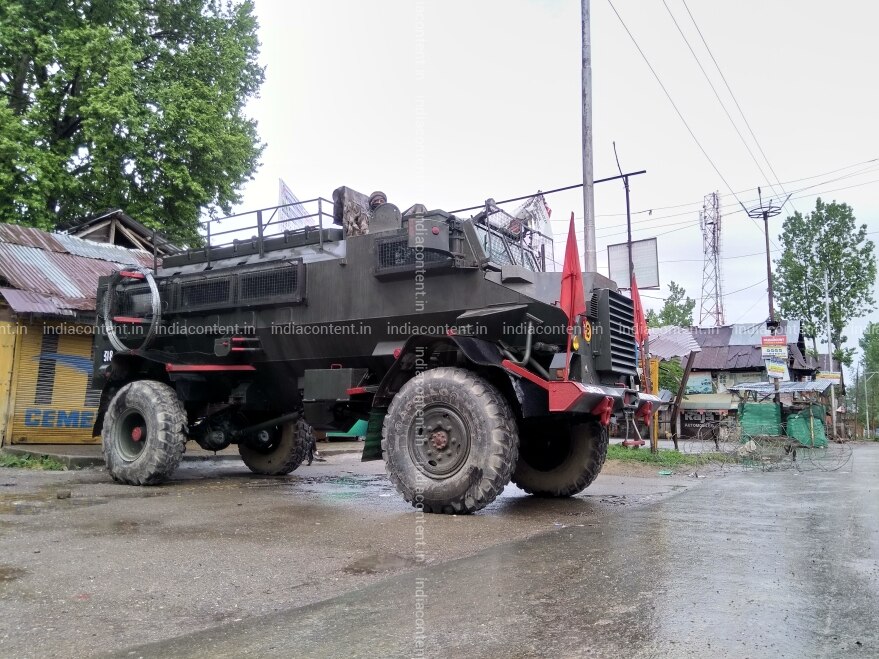 JAMMU KASHMIR INDIA MAY 03 Military personnel after encounter in Handwara. Photo by Rouf Ahmad Roshangar India Today Group