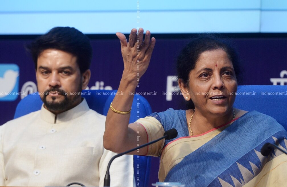 NEW DELHI INDIA AUGUST 23 Minister of Finance and Minister of Corporate Affairs Nirmala Sitharaman clicked during a press conference in New Delhi. Photo by K Asif India Today Group Nirmala Sitharaman
