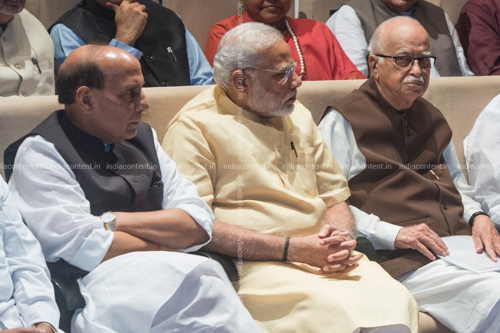 Rajnath Singh, PM Narendra Modi, LK Advani and Vankiah Naidu during the Monsoon Session of Parliament on 2nd August, 2016 - photo by Vikram Sharma