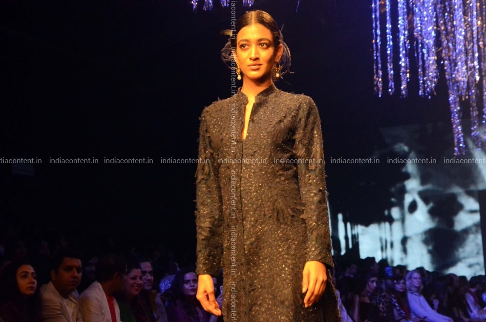 Mumbai A model showcases fashion designer Raghavendra Rathore's creation during the Lakme Fashion Week LFW Summer Resort 2019 in Mumbai on Feb 2 2019. Photo IANS