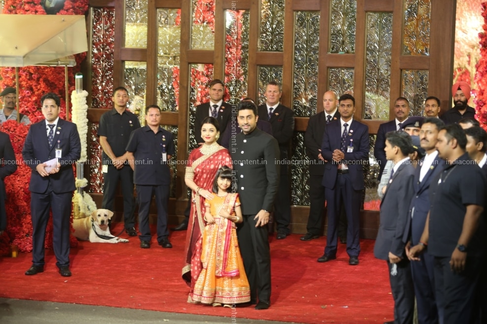 Mumbai Actors Abhishek Bachchan and Aishwarya Rai with their daughter Aaradhya Bachchan at the wedding ceremony of industrialist Mukesh Ambani's daughter Isha Ambani and Anand Piramal at Antilia in Mumbai on Dec 12 2018. Photo IANS