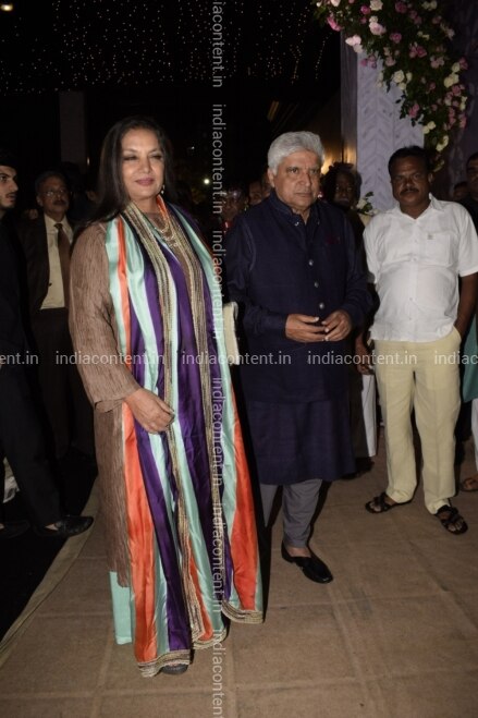 Buy Mumbai Actress Shabana Azmi with her husband and lyricist poet scriptwriter and filmmaker Javed Akhtar at the wedding reception of Poorna Patel daughter of NCP leader Praful Patel in Mumbai on July 21 2018 Photo IANS Pictures, Images, Photos By IANS - Entertainment pictures
