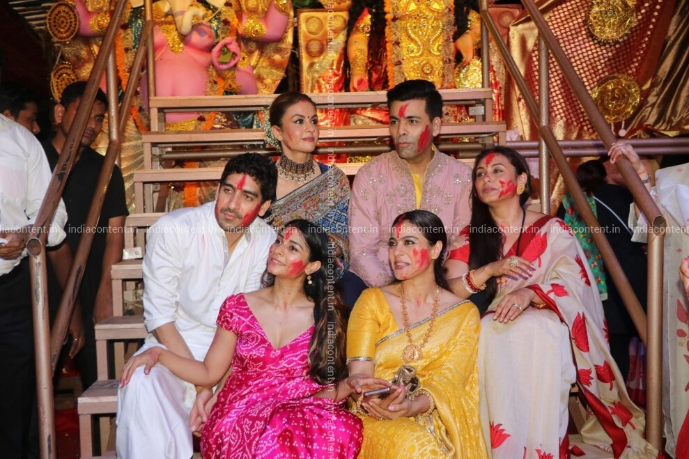 Buy Mumbai Filmmaker Karan Johan with actors Ayan Mukerji Kajol Tanishaa Mukerji and Rani Mukerji during Vijaya Dashami celebrations in Mumbai on Oct 8 2019 Photo IANS Pictures, Images, Photos By IANS - Entertainment pictures