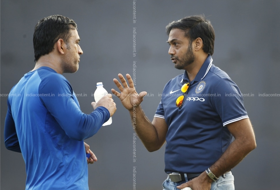 Mumbai India's MS Dhoni and chief Indian selector MK Prasad in action during a practice session ahead of the 1st T20I match against Australia at ACA VDCA Cricket Stadium in Visakhapatnam on Feb 22 2019. Photo Sujeet Yadav IANS