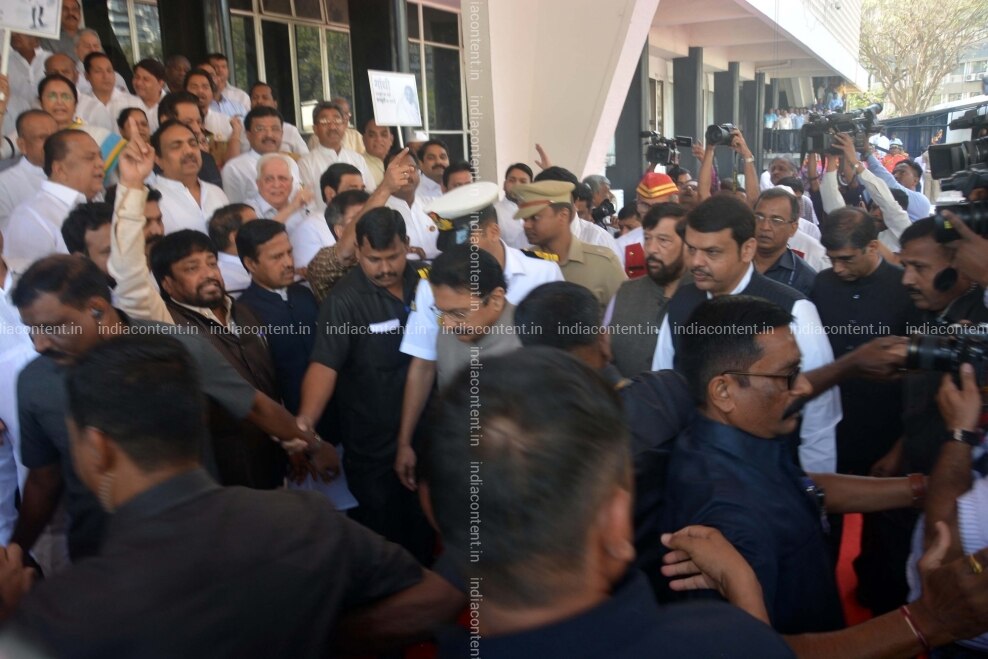 Mumbai Maharashtra Governor Chennamaneni Vidyasagar Rao and Chief Minister Devendra Fadnavis arrive at state assembly on the first day of the budget session in Mumbai on Feb 25 2019. Photo IANS