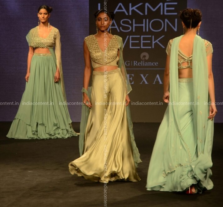 Mumbai Models walk the ramp showcasing fashion designer Kanchan More Sabharwal's creation during Lakme Fashion Week LFW Summer Resort 2019 in Mumbai on Feb. 2 2019. Photo IANS