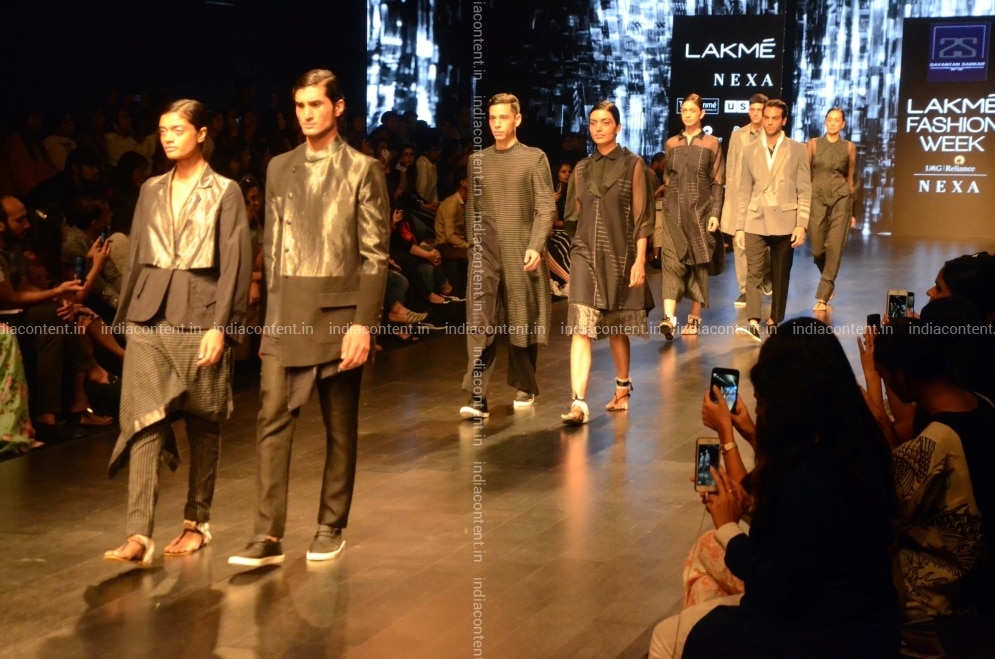 Mumbai Models walk the ramp showcasing fashion designer Sayantan Sarkar's creation on Day 3 of the Lakme Fashion Week Summer Resort 2019 in Mumbai on Feb 1 2019. Photo IANS