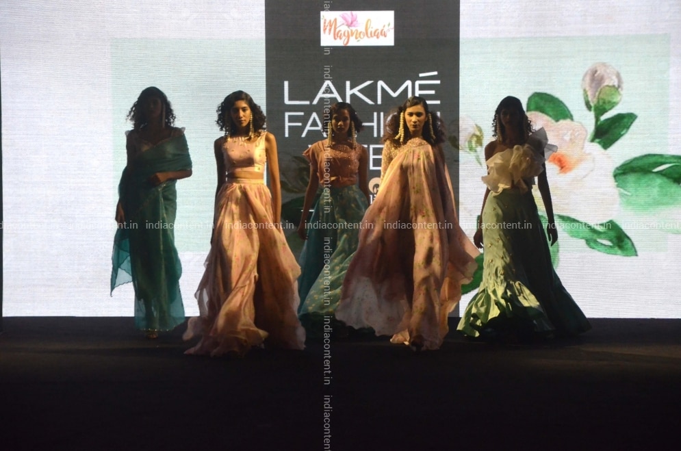 Mumbai Models walk the ramp showcasing fashion designer Vaani Raghupathy's creation during Lakme Fashion Week LFW Summer Resort 2019 in Mumbai on Feb. 2 2019. Photo IANS