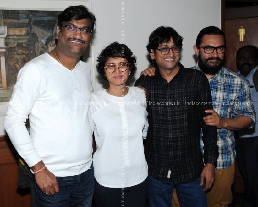 MUMBAI, INDIA ? JANUARY 03: Atul Gogavale and Kiran Rao during the launch of special music video shot by filmmaker Nagraj Manjule to announce Satyamev Jayate Water Cup, in Mumbai. (Photo by Milind Shelte/India Today Group) Atul Gogavale;Kiran Rao