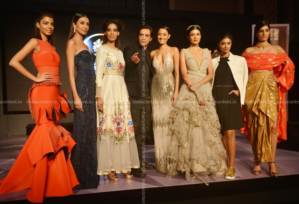 MUMBAI INDIA OCTOBER 03 Arjun Rampal WITH modles during the unveiling of Reflections of Style AT the preview of Blenders Pride Fashion Tour IN Mumbai.Photo BY Milind Shelte India Today GROUP Arjun Rampal