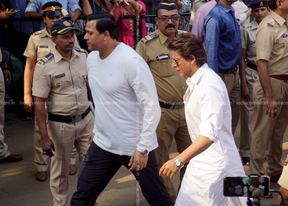 MUMBAI INDIA FEBRUARY 28 Sridevis funeral AT Vile Parle Smashan bhumi IN Mumbai. Photo BY Milind Shelte India Today GROUP Shahrukh Khan