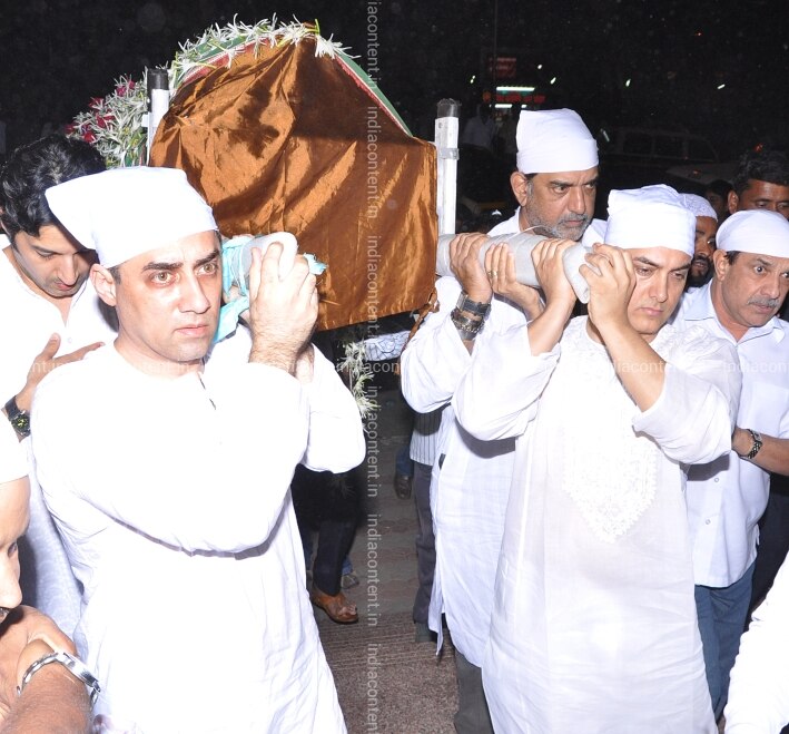 MUMBAI INDIA FEBRUARY 3 Bollywood actors Aamir Khan R AND Faizal Khan L carry the body of their father Bollywood director AND producer Tahir Hussain AT the cremation IN Mumbai ON February 3 2010. Photo BY Yogen Shah India Today GROUP Aamir KhanFaizal Khan