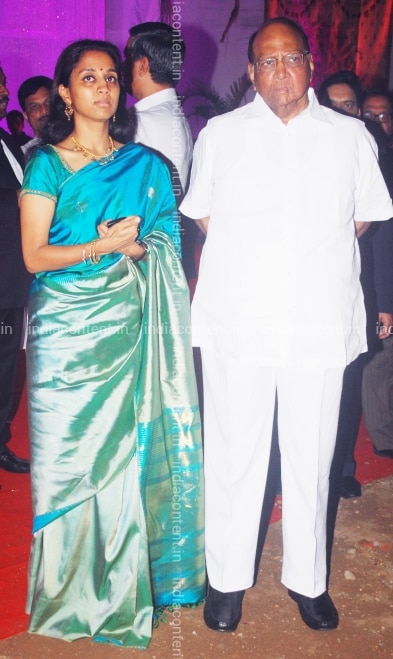 MUMBAI INDIA NOVEMBER 28 Sharad Pawar with his daughter Supriya Sule during politician Narayan Ranes sons wedding in Mumbai on November 28 2010. Photo by Yogen Shah India Today Group Sharad PawarSupriya Sule