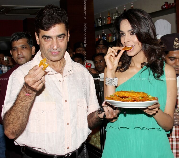 MUMBAI INDIA - JUNE 14 Mallika Sherawat and director Indra Kumar promotes Jalebi Bai song from Double Dhamaal in Mumbai on June 14 2011. Photo by Yogen ShahIndia Today Group Mallika SherawatIndra Kumar