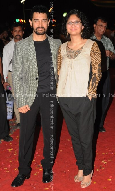 MUMBAI INDIA - FEBRUARY 03 Aamir Khan with wife Kiran Rao at the premier of Dev Anands re-release of classical hindi film Hum Dono in colour version in Mumbai on February 3 2011. Photo by Yogen Shah India Today Group Aamir KhanKiran Rao
