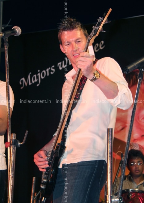 MUMBAI INDIA - MAY 15 Australian cricketer Brett Lee performs with Majors band at Inorbit Mall in Mumbai on Sunday night. Photo by Yogen Shah India Today Group Brett Lee