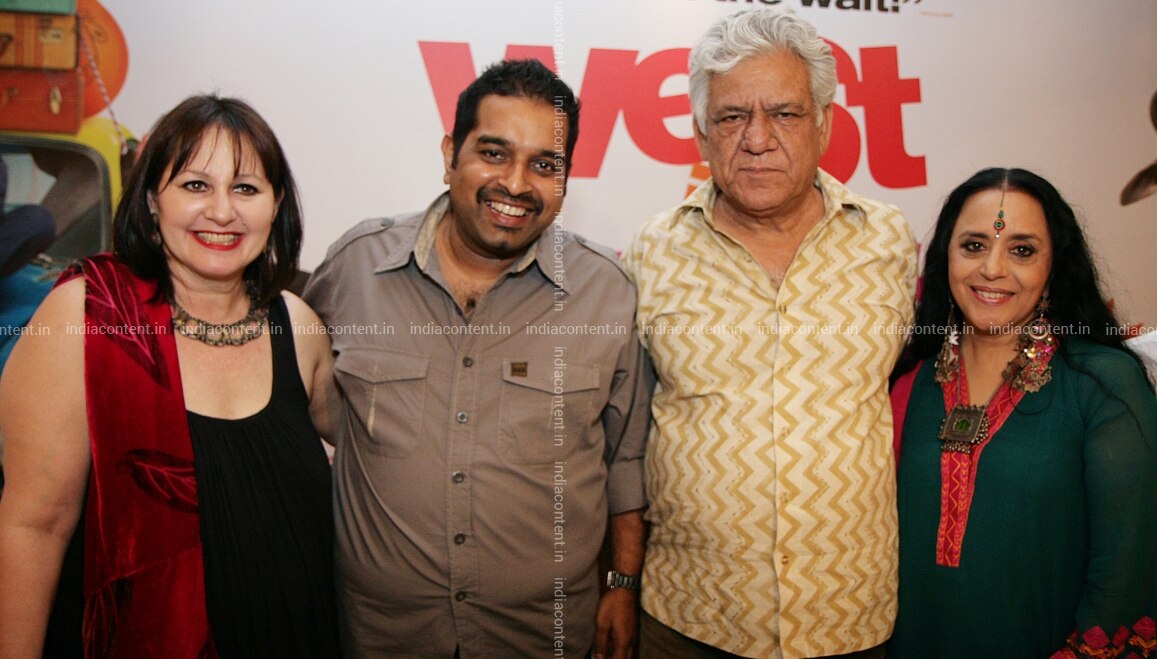 MUMBAI INDIA - JUNE 03 Leslee Udwin Shankar Mahadevan Om Puri and Ila Arun during West is West press meet in Mumbai on Friday June 3 2011. Photo by Yogen Shah India Today Group Leslee UdwinShankar MahadevanOm Puri Ila Arun