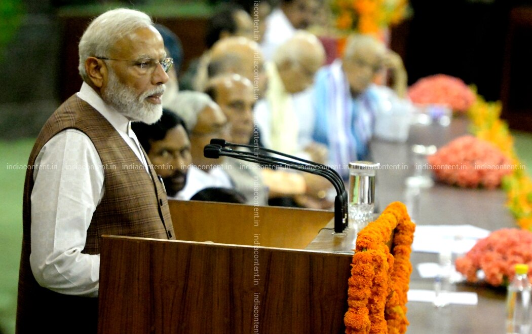 NEW DELHI INDIA MAY 25 Prime Minister Of India Narendra Modi addressing the audience at the National Democratic Alliance NDA meeting at the central hall of the Parliament in New Delhi. Photo by Pankaj Nangia India Today Group Narendra Modi