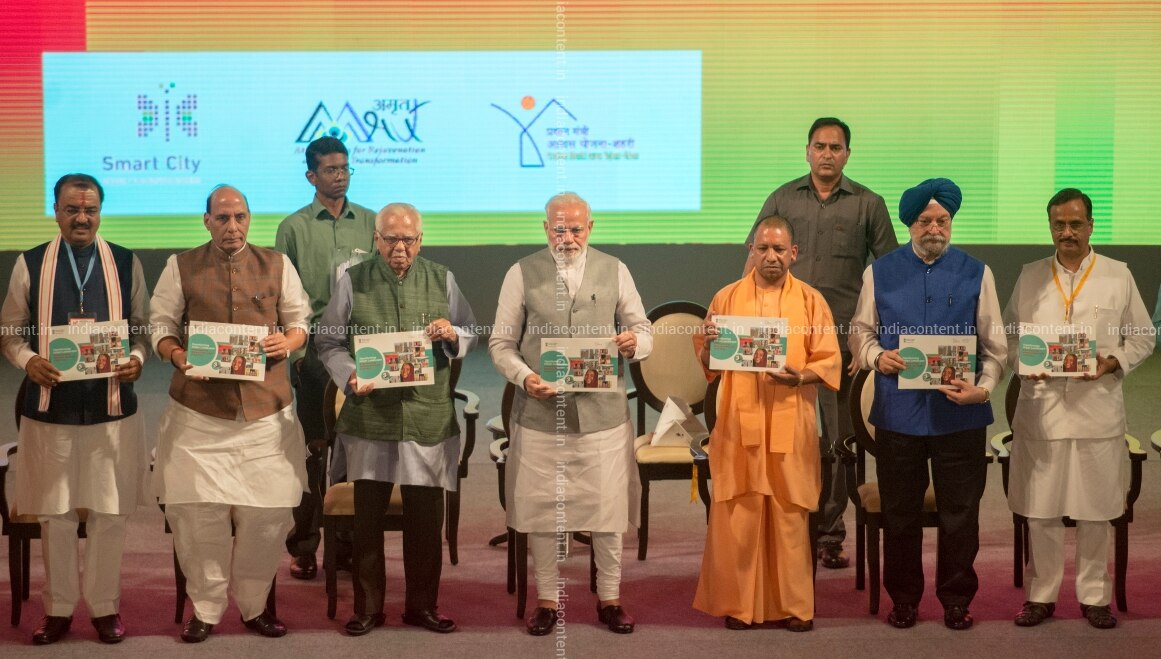 Prime Minister Narendra Modi on Saturday 28 07 2018 reached Lucknow to participate in a programme on Transforming Urban Landscape marking the third anniversary of three key government initiatives related to urban development Pradhan Mantri Awas Yojana Urban Atal Mission for Rejuvenation of Urban Transformation AMRUT and the Smart Cities Mission. PM launched various projects related to urban housing and infrastructure and the Smart City scheme PIC BY MANEESH AGNIHOTRI