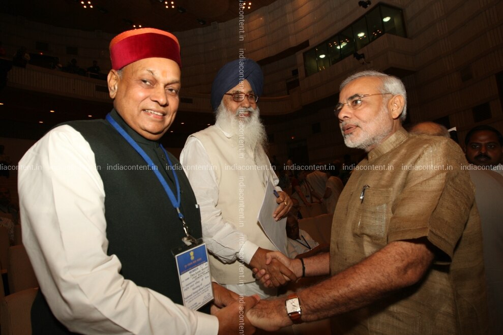 Narendra Modi Chief Minister of Gujarat with Prem Kumar Dhumal Chief Minister of Himachal Pradesh and Parkash Singh Badal Chief Minister of Punjab at 14th meeting of the National Integration Council NIC in New Delhi India The National Integration Council NIC Meet scheduled for Monday in the national capital is all set to be a hot a fiery political affair in the backdrop of the recent incidents of terror strikes and communal violence in different part of the country. The political parties at the moment clearly look to have been divided into two blocks one accusing the government of being soft on terror whereas the other is clamouring for a ban on Bajrang Dal Vishwa Hindu Parishad and Rashtriya Swayam Sevak Sangh.
