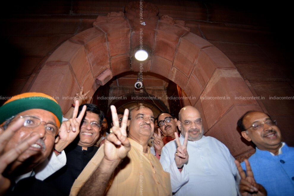 Buy New Delhi BJP chief Amit Shah with Union Ministers Piyush Goyal Ananth Kumar and Arjun Ram Meghwal come out of Parliament after no confidence motion against Modi government was defeated on July 21 2018 Photo IANS Pictures, Images, Photos By IANS - News pictures