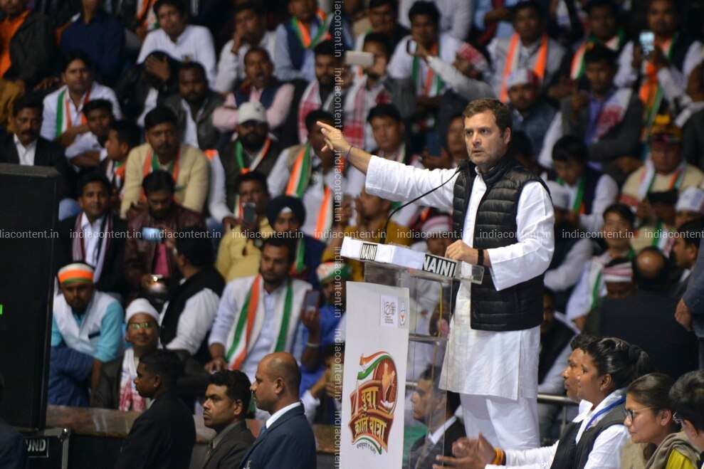 New Delhi Congress President Rahul Gandhi addresses during a party programme in New Delhi on Jan 30 2019. Photo IANS