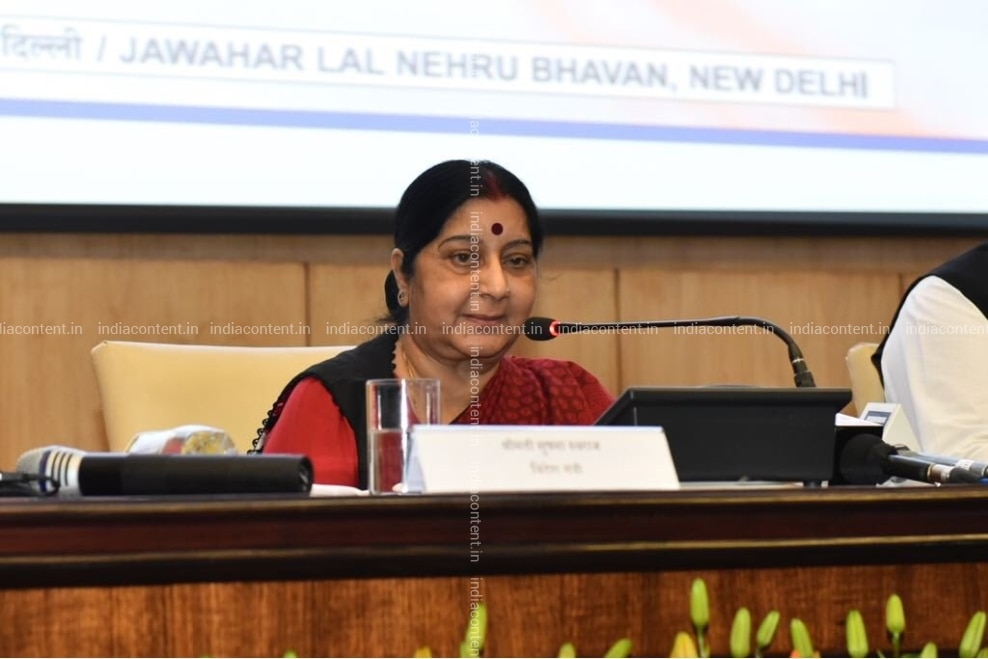 New Delhi External Affairs Minister Sushma Swaraj addresses during a programme organised on Passport Seva Divas in New Delhi on June 26 2018. Photo IANS MEA