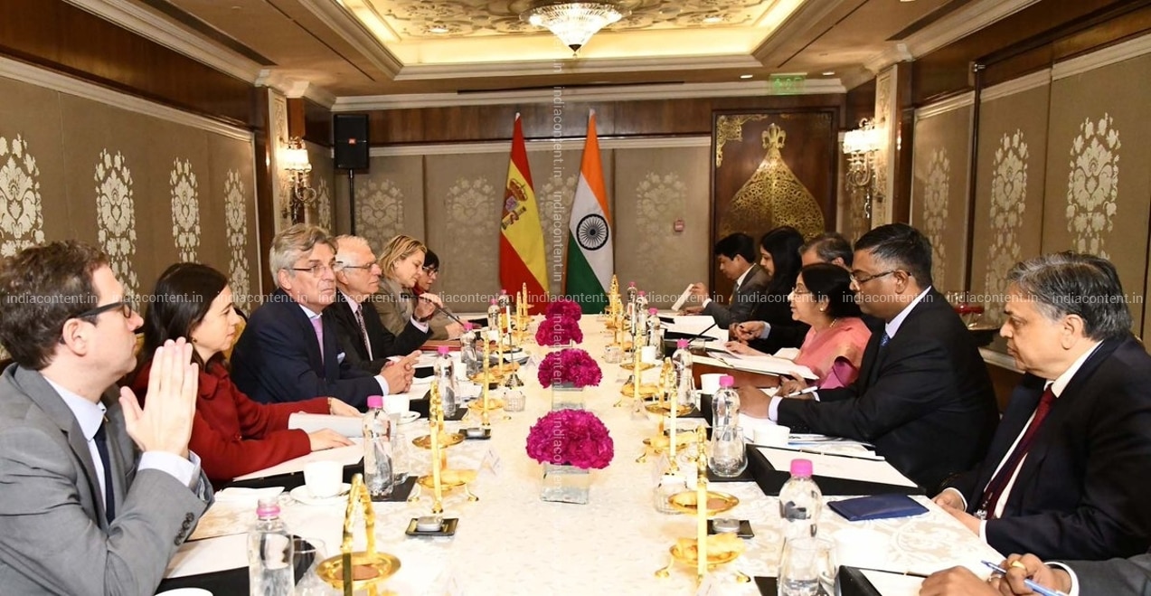 New Delhi External Affairs Minister Sushma Swaraj and Foreign Minister of Spain Josep Borrell hold a bilateral meeting in New Delhi on Jan 8 2019. Photo IANS MEA
