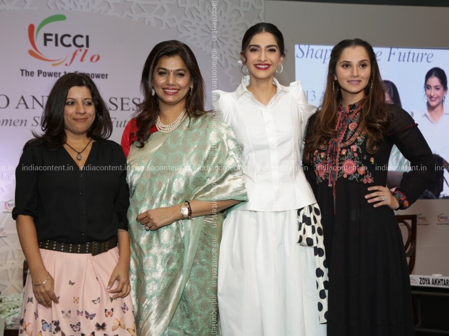 Buy New Delhi Filmmaker Zoya Akhtar FICCI Ladies Organisation FLO President Pinky Reddy actress Sonam Kapoor and Tennis player Sania Mirza at the 35th Annual Session of FICCI Ladies Organisation FLO in New Delhi on April 13 2019 Photo Amlan P Pictures, Images, Photos By IANS - Entertainment pictures