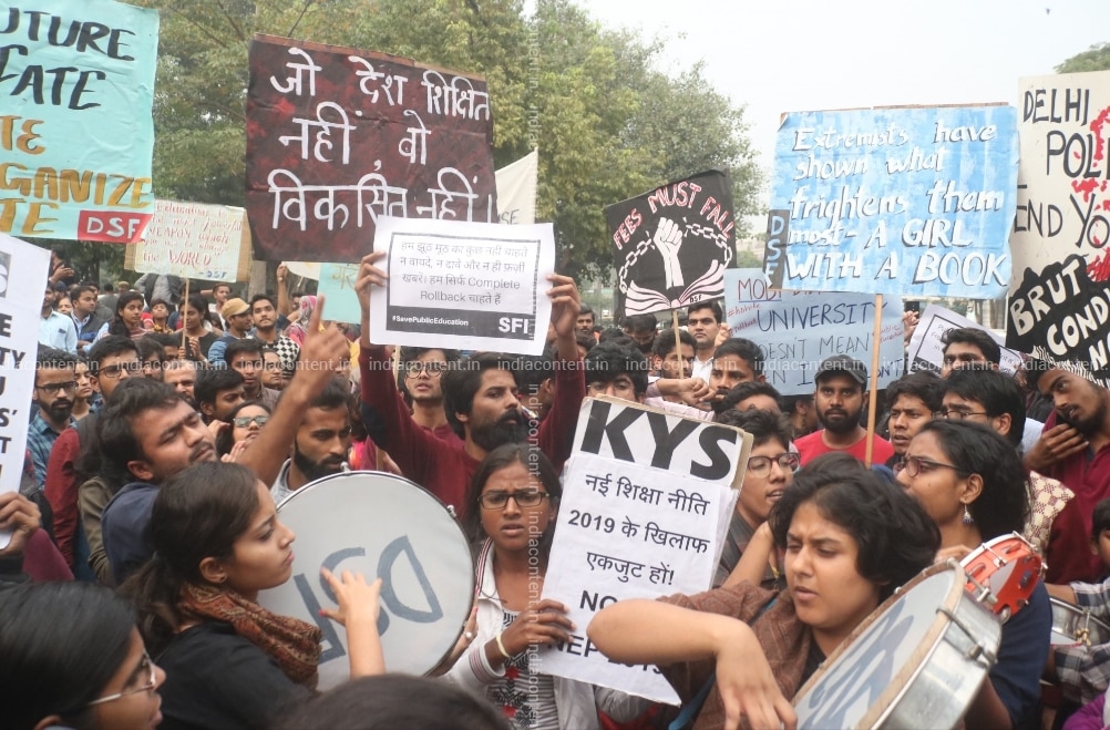 New Delhi JNU students along with others students organisation stage a protest against central government over hostel fees hike and other issues in New Delhi on Nov 27 2019. Photo IANS