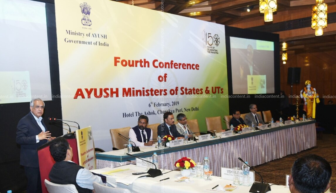 New Delhi NITI Aayog Vice Chairman Rajiv Kumar addresses at the Fourth Conference of State AYUSH Health Ministers in New Delhi on Feb 6 2019. Photo IANS PIB