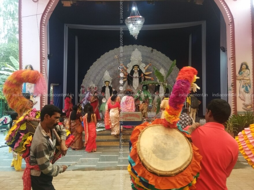 Buy New Delhi People carry Kola Bou a banana tree said to consort of lord Ganesha after the ritual of Kola Bou Snan or Nabapatrika Snan on Maha Saptami at a Durga Puja Pandal in New Delhis Mayur Vihar on Oct 16 2018 Photo IANS Pictures, Images, Photos By IANS - Others pictures