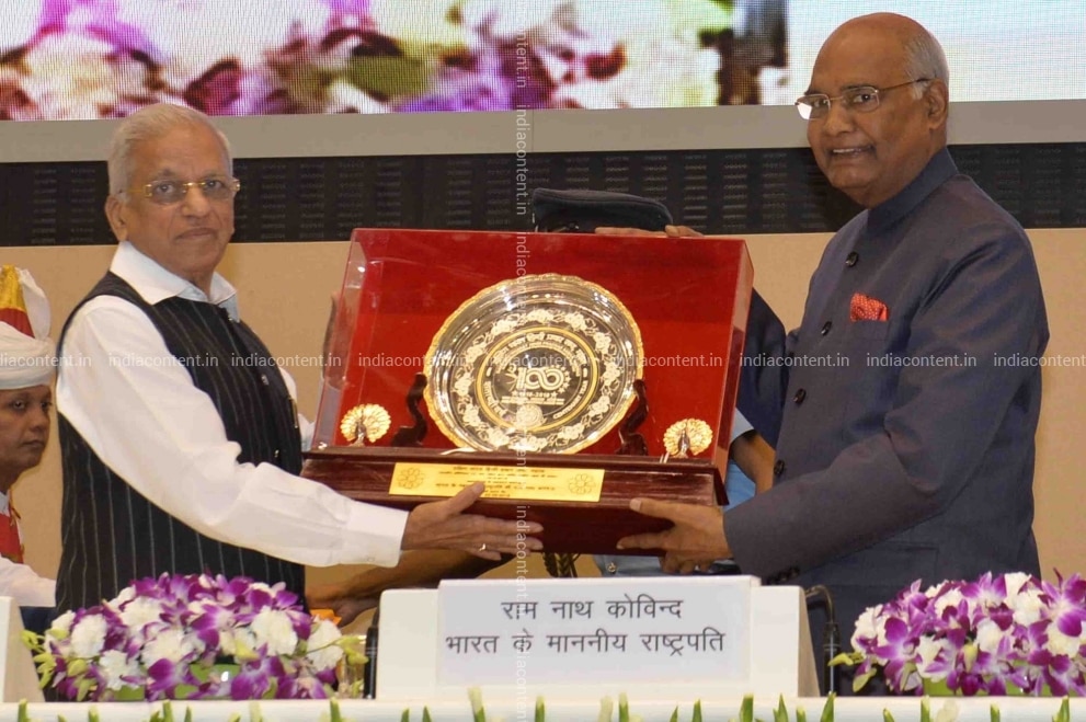 New Delhi President Ram Nath Kovind being felicitated at the inaugural programme of the centenary celebrations of Dakshina Bharat Hindi Prachar Sabha at Vigyan Bhavan in New Delhi on Sept 22 2018. Photo IANS RB