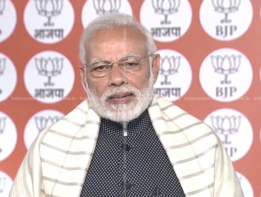New Delhi Prime Minister and BJP leader Narendra Modi addresses during his video interaction with BJP workers from five Lok Sabha constituencies of Andhra Pradesh in New Delhi on Jan 2 2019. Photo IANS BJP