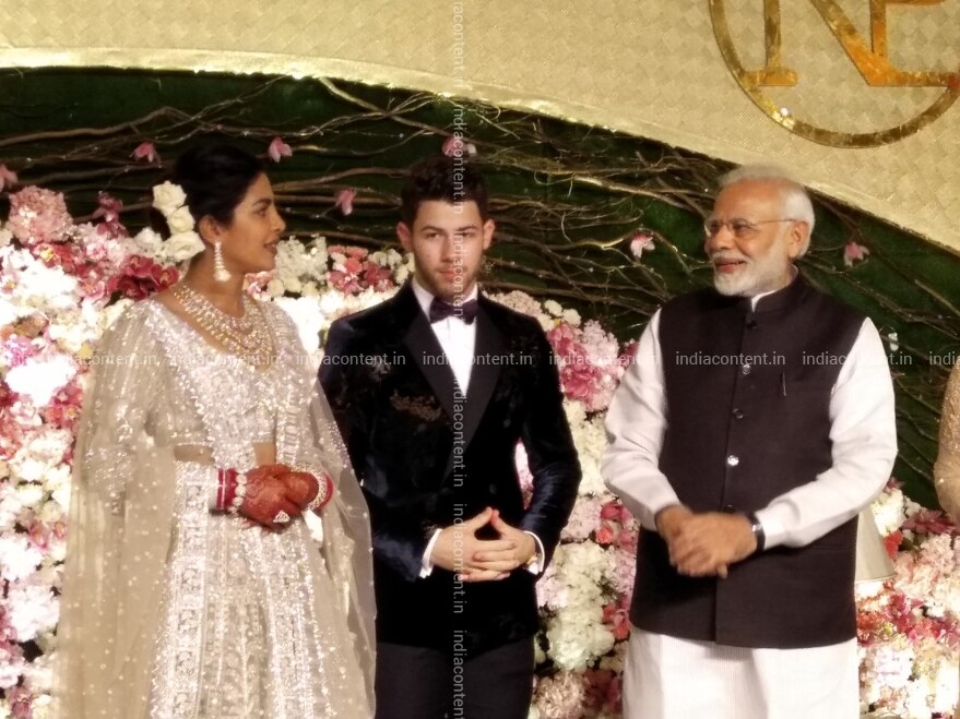Buy New Delhi Prime Minister Narendra Modi with actress Priyanka Chopra and Nick Jonas at their wedding reception in New Delhi on Dec 4 2018 Photo IANS Pictures, Images, Photos By IANS - Entertainment pictures