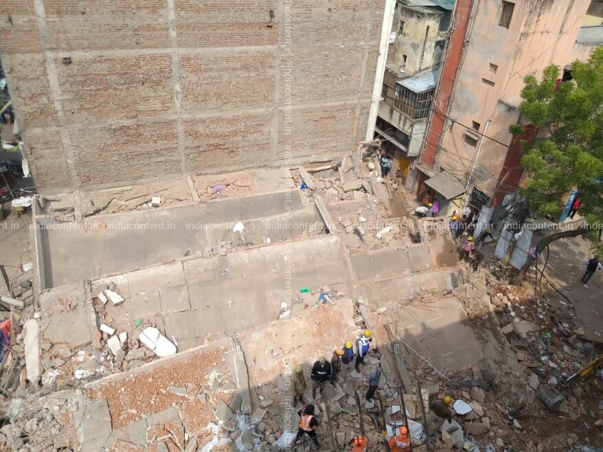 New Delhi Rescue operations underway at the site where a four storey building collapsed in Karol Bagh New Delhi on Feb. 27 2019. Photo IANS