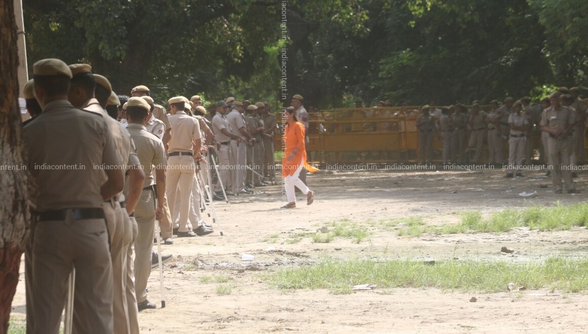 New Delhi Security personnel deployed outside the counting centre after the counting of votes for the DUDU elections has been suspended for the day due to faulty EVMs in New Delhi on Sept 13 2018. Photo IANS