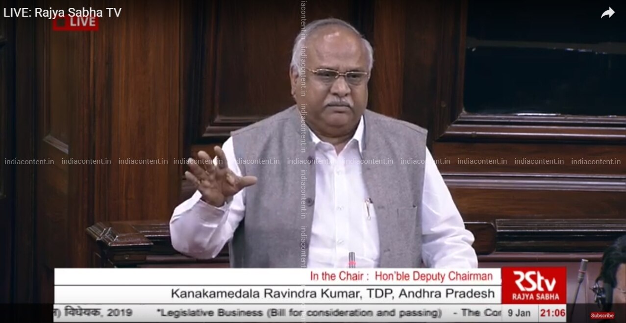New Delhi TDP leader and Rajya Sabha MP Kanakamedala Ravindra Kumar speaks in the Rajya Sabha Parliament House on Jan 9 2019. RSTV IANS