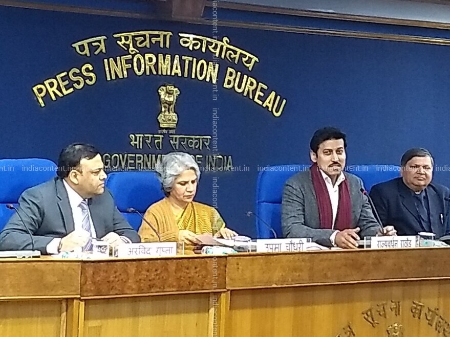 New Delhi Union MoS Youth Affairs and Sports Rajyavardhan Singh Rathore at a press conference during the inauguration of National Youth Parliament 2019 in New Delhi on Jan 12 2019. Photo IANS PIB