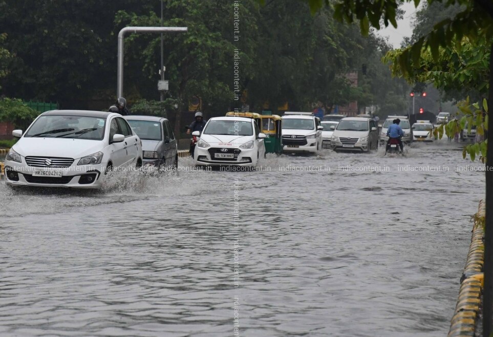 New Delhi Vehicles struggle through a waterlogged street in New Delhi after heavy rains lashed the national capital on July 13 2018. Photo Bidesh Manna IANS