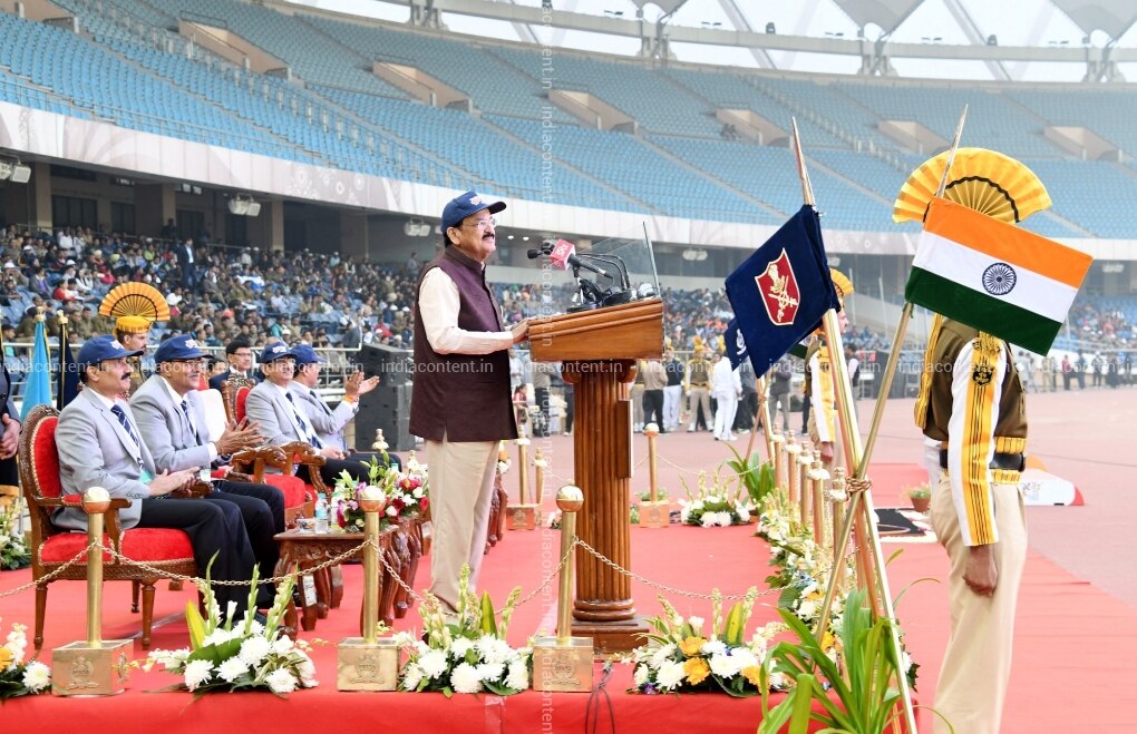New Delhi Vice President M. Venkaiah Naidu addresses during the inaugural event of the 67th All India Police Athletic Championship in New Delhi on Dec 10 2018. Photo IANS PIB