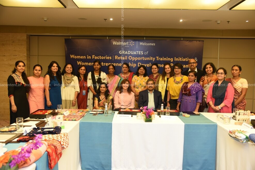 New Delhi Walmart International President and CEO Judith McKenna and Walmart India President and CEO Krish Iyer during a round table meeting with women graduates and entrepreneurs from training and upskilling programs that focused on businesses factories farms and retail in New Delhi on July 11 2019. Photo IANS